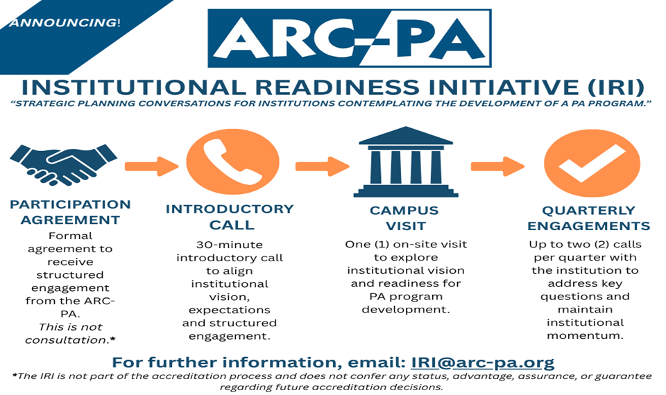 The ARC-PA encourages excellence in PA education through its accreditation process by establishing and maintaining standards of quality for educational programs. It awards accreditation to programs through a peer review process that includes documentation and periodic site visit evaluation to substantiate compliance with the Accreditation Standards for Physician Assistant Education. The accreditation process is designed to encourage sound educational practices and innovation by programs and to stimulate continuous self-study and improvement.